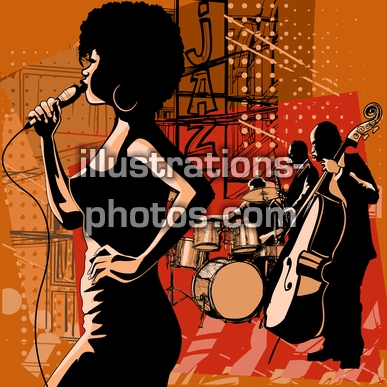 Jazz singer with saxophonist and double-bass player – Vector illustration